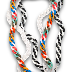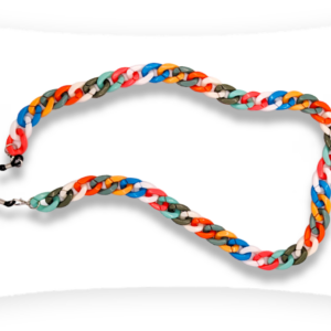 Available in a Multicolour, Black/White or Clear Chain.