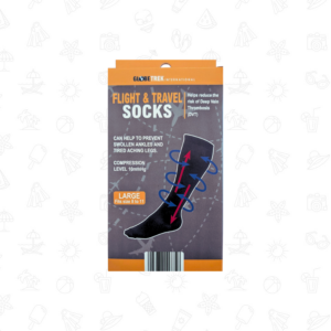 Our Flight Socks in Size Large are a travel essential for anyone embarking on journeys of four hours or more. Engineered to provide graduated compression, these socks apply gentle pressure at the ankle that gradually decreases up the leg. This clinically-inspired design encourages healthy blood flow back to the heart, significantly reducing leg fatigue and puffiness.