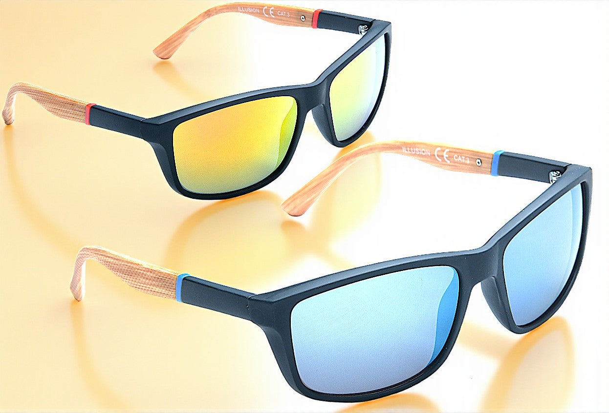 - Matt Black/Bamboo Effect/Blue Mirror Lens – Matt Black/Bamboo Effect/Red/Yellow Mirror Lens