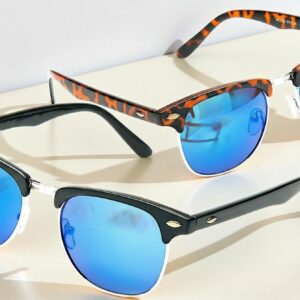 - Matt Black/Silver/Light Blue Mirrored Lens – Matt Brown Tortoiseshell/Light Blue Mirrored Lens.
